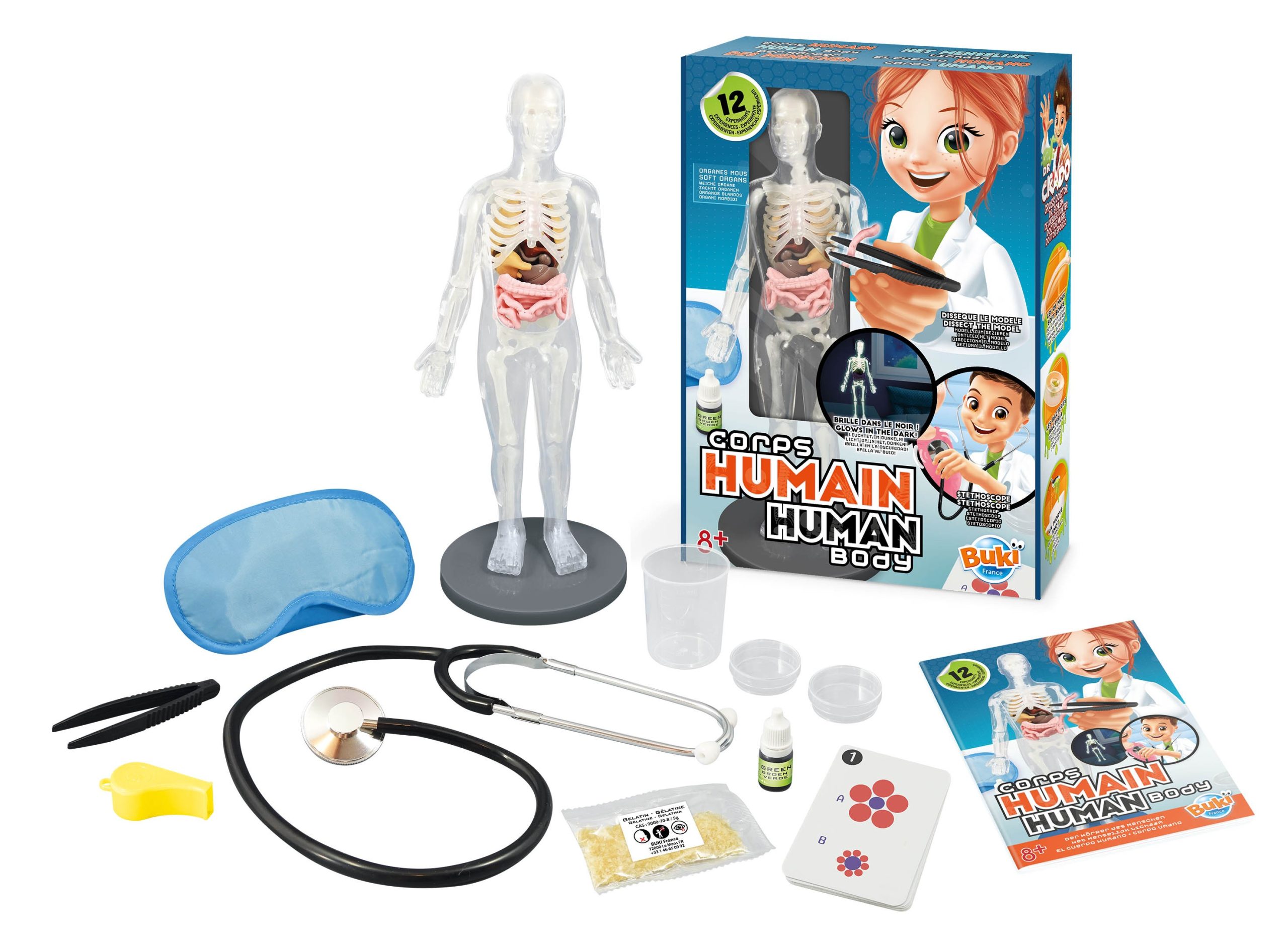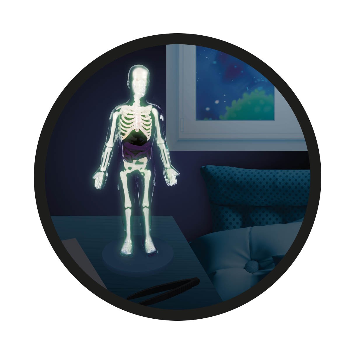 Ένα μοντέλο του ανθρώπινου σώματος, με μαλακά όργανα για χειρισμό και φωσφορίζοντα οστά. Ανακαλύψτε 12 πειράματα για να καταλάβετε τα μυστικά της ανατομίας: καλλιεργήστε βακτήρια, δημιουργήστε βλέννα και ακούστε την καρδιά σας να χτυπάει με το στηθοσκόπιο. Περιλαμβάνει πλήρες εγχειρίδιο με οδηγίες. ΗΛΙΚΙΑ 8+
