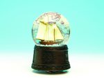 Χιονόμπαλα ιστιοφόρο σε χάρτη, με ανάγλυφη βάση που φέρει ναυτικό τιμόνι. Φτιαγμένη από ρητίνη(επεξεργασμένη πορσελάνη). Διαστάσεις 10x15cm ,γυρίζει υπό την μελωδία Over the waves