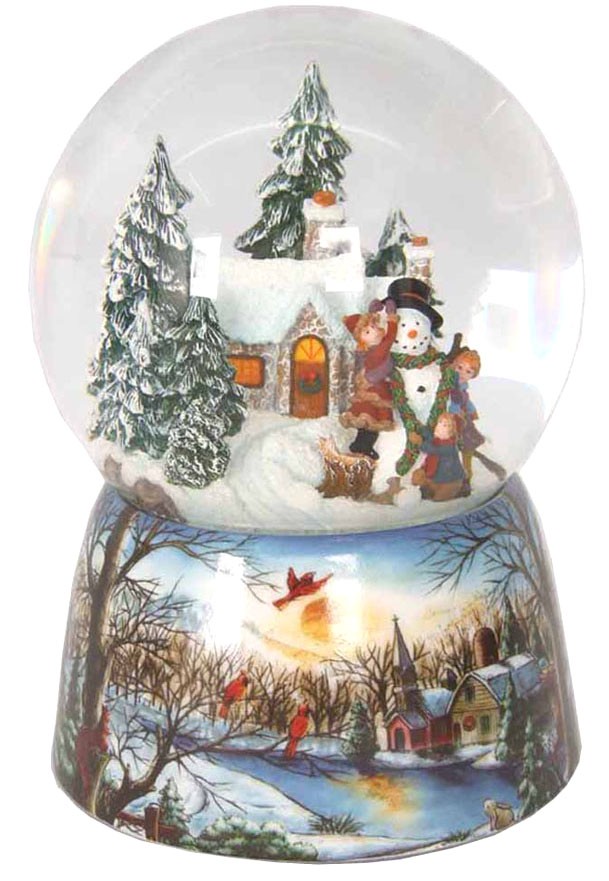 Χιονόμπαλα παιδιά φτιάχνουν χιονάνθρωπο(διάμετρος 100mm) από επεξεργασμένη ριτίνη, η σκηνή περιστρέφεται με τη μελωδία Winter Wonderland. Διαστάσεων 10x15cm.