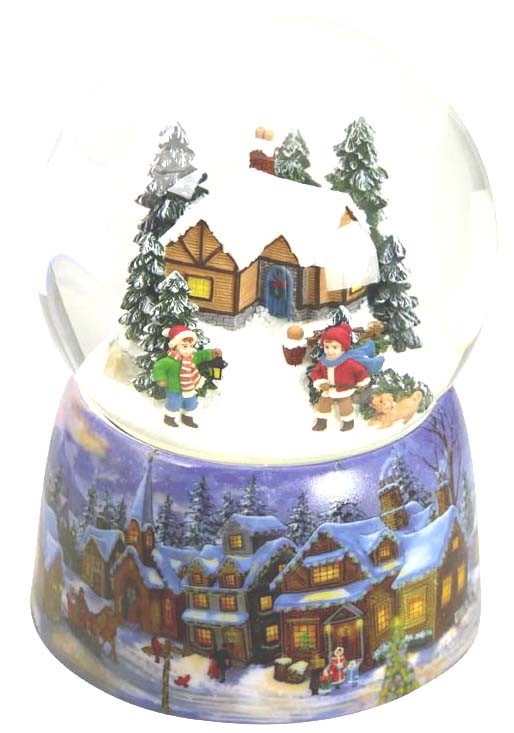 Χιονομπαλα Xριστουγεννιατικη με παιδια στο χιονι με δεντρα και σκυλο διαστασεις 10Χ10Χ15 cm.Παιζει μελωδια ” Winter Wonderland ”