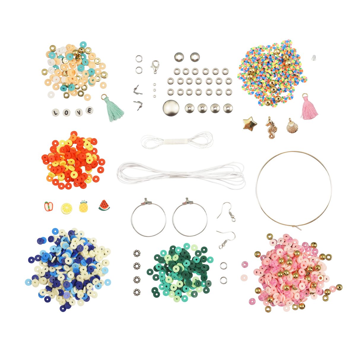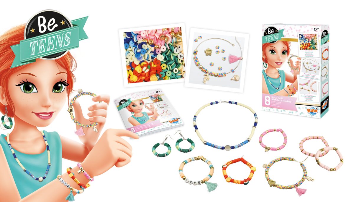 Υλοποιήστε 8 κοσμήματα με χρωματιστό Heishi Χάντρες! Περιέχει: ποικιλία χάντρες heishi, πομπόν,χάντρες, γούρια… Έγχρωμο εικονογραφημένο