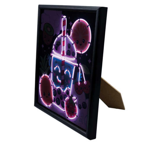 Δημιουργήστε μια εικόνα με ένα φρουτώδες, πολύχρωμο τσάι με φούσκες για να διακοσμήσετε την κρεβατοκάμαρά σας! Χρωματίστε με μαρκαδόρους, περάστε το σύρμα σύμφωνα με το διάγραμμα και τοποθετήστε την εικόνα στο πλαίσιο. Μπορείτε να κρεμάσετε την εικόνα στον τοίχο ή να την τοποθετήσετε σε ορθοστασία. 3 λειτουργίες φωτισμού: πάντα ενεργοποιημένη, γρήγορη λάμψη ή αργή λάμψη. Διαστάσεις πλαισίου: 20,5 x 23,5 εκ. Περιλαμβάνεται φυλλάδιο Απαιτούνται 2 μπαταρίες LR06, δεν περιλαμβάνονται. 7 ετών +