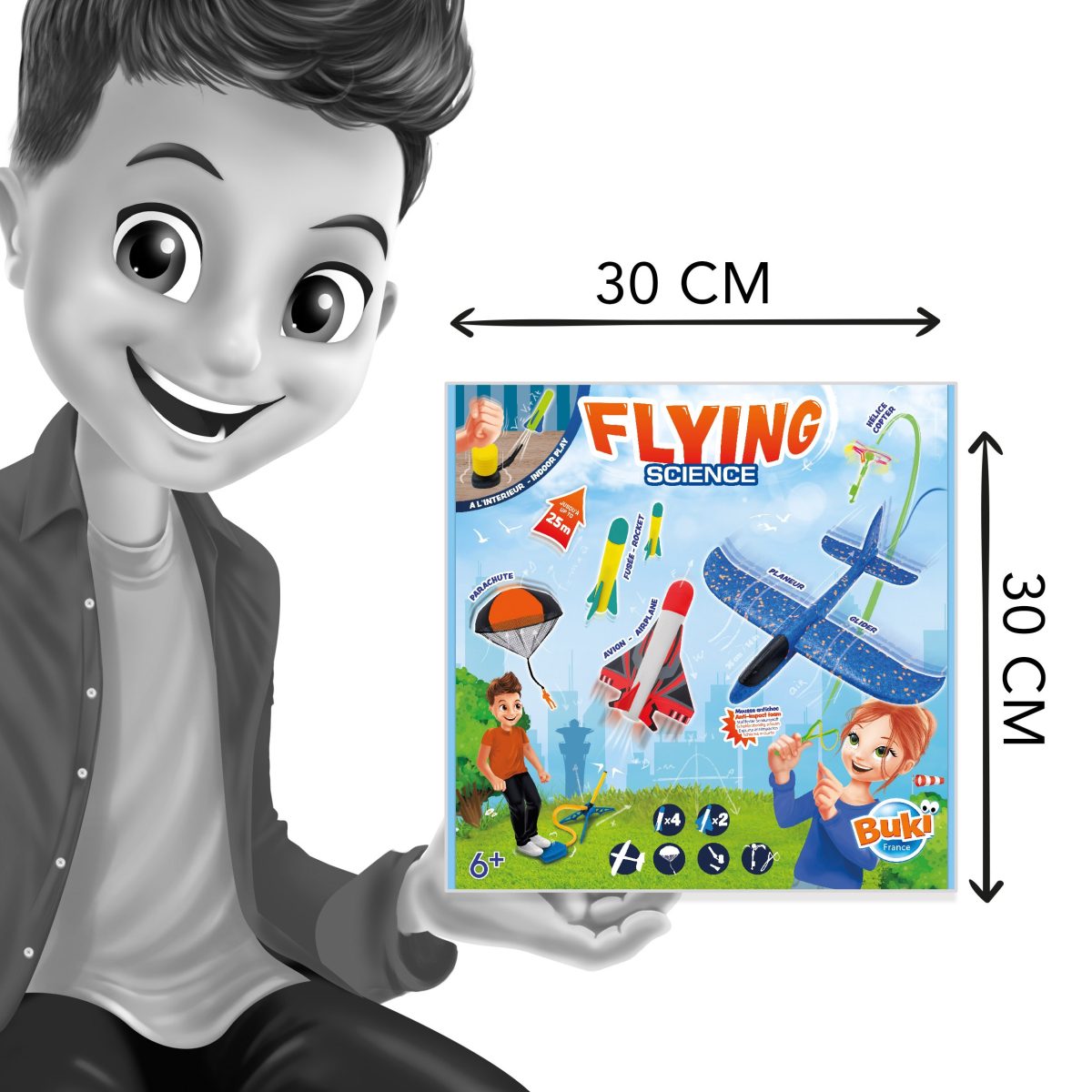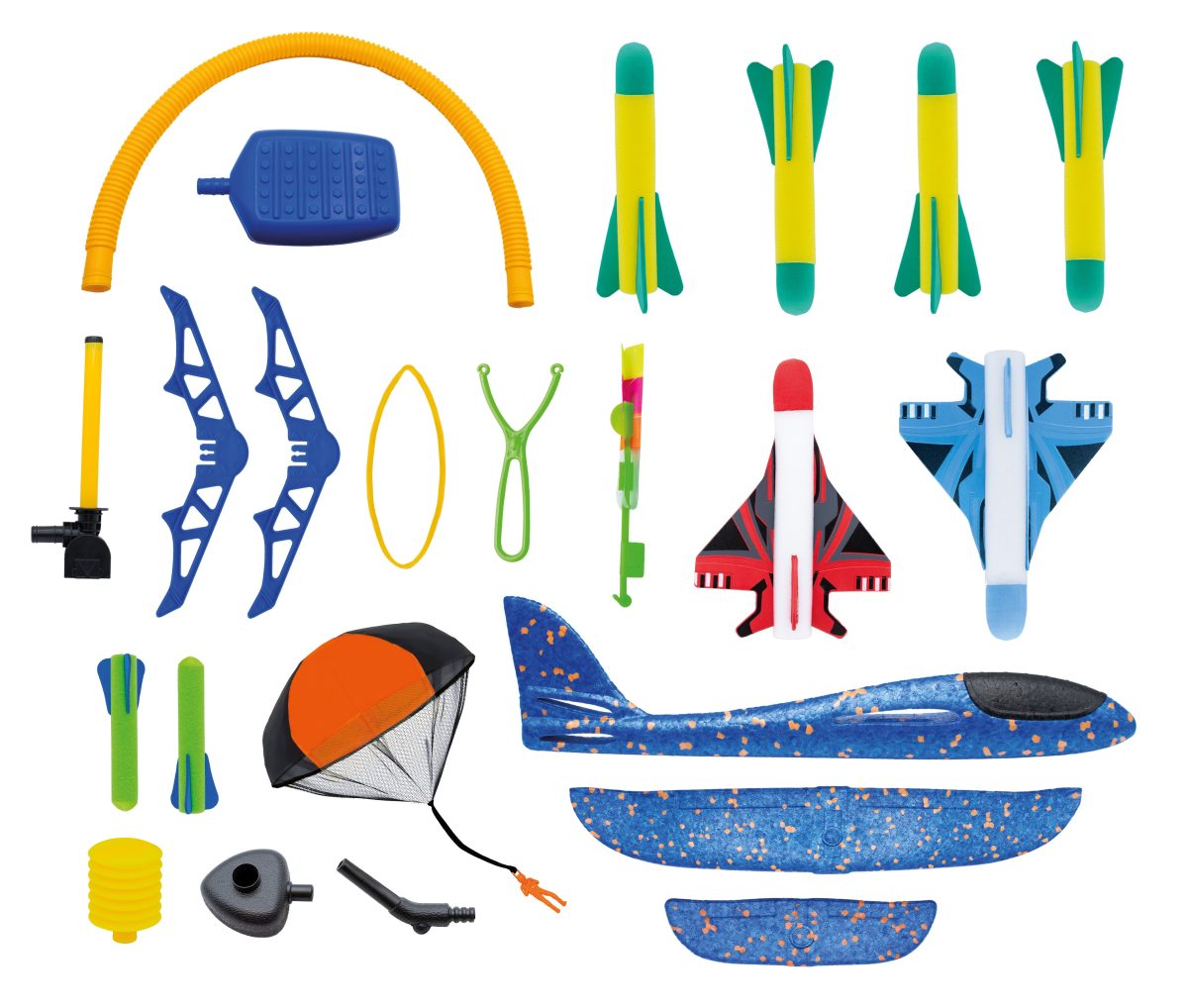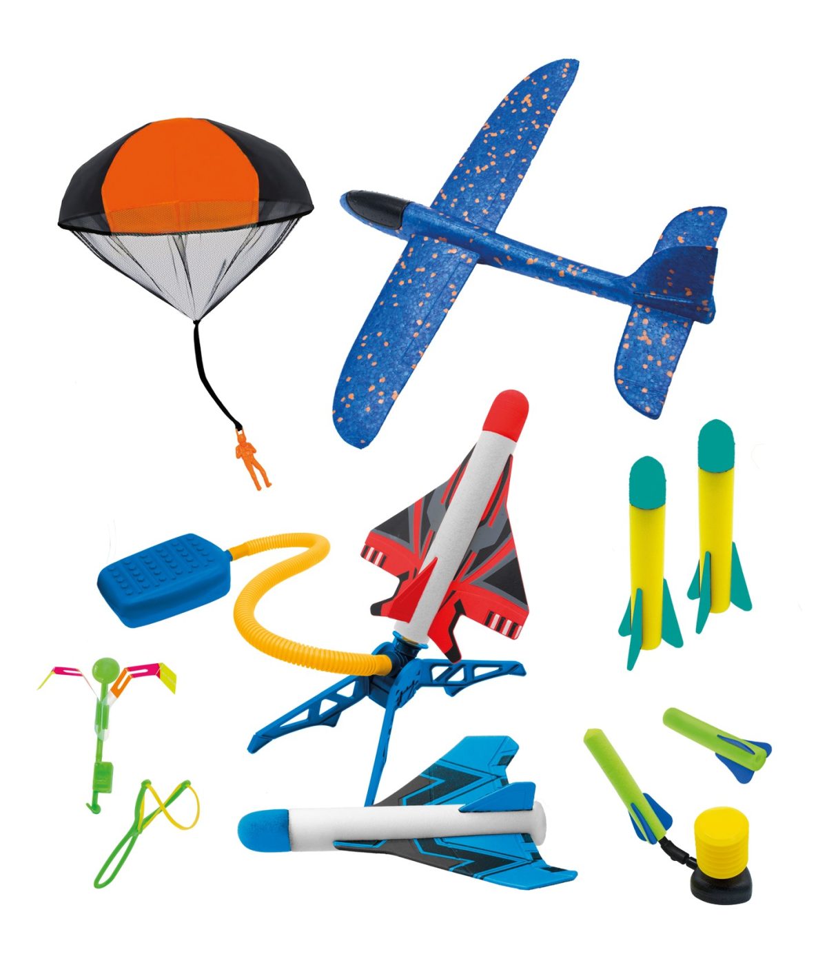 Ανακαλύψτε 5 ιπτάμενες μηχανές για να δοκιμάστε σε εξωτερικούς χώρους: Ρουκέτα Αεριωθούμενο αεροπλάνο Ανεμοπλάνα Εκτοξευτής ελικοπτέρουΑλεξίπτωτο Οι πύραυλοι μπορούν να πετάξουν έως και 20 μέτρα ύψος! Περιλαμβάνεται: ένας μίνι εκτοξευτής προς παίζουν σε εξωτερικούς χώρους Οδηγίες που απεικονίζονται με χρώματα και προτείνει πτήση 6 ετών +