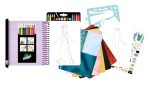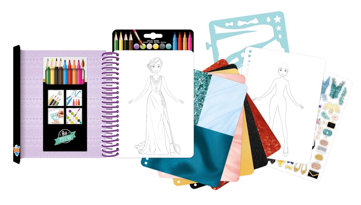 Δημιουργήστε και σχεδιάστε τα δικά σας μοναδικά ρούχα. Χρησιμοποιήστε αυτοκόλλητα υφάσματα για να φτιάξετε τα δικά σας σχεδια. Σχεδιάστε ρούχα χησιμοποιώντας τα πρότυπα προσθέτοντας αυτοκόλλητα και αξεσουαρ. 4 χρωματιστά μολύβια , στυλο ,sketchbook που περιέχουν 28 παχιές σελίδες , 6 σελίδες ρούχων σε χρώμα και 22 σελιδες περιγραμμάτων. Διαθέσιμα 3 μοντέλα , φορέματα πριγκίπισσας κλπ. Ηλικία 6+
