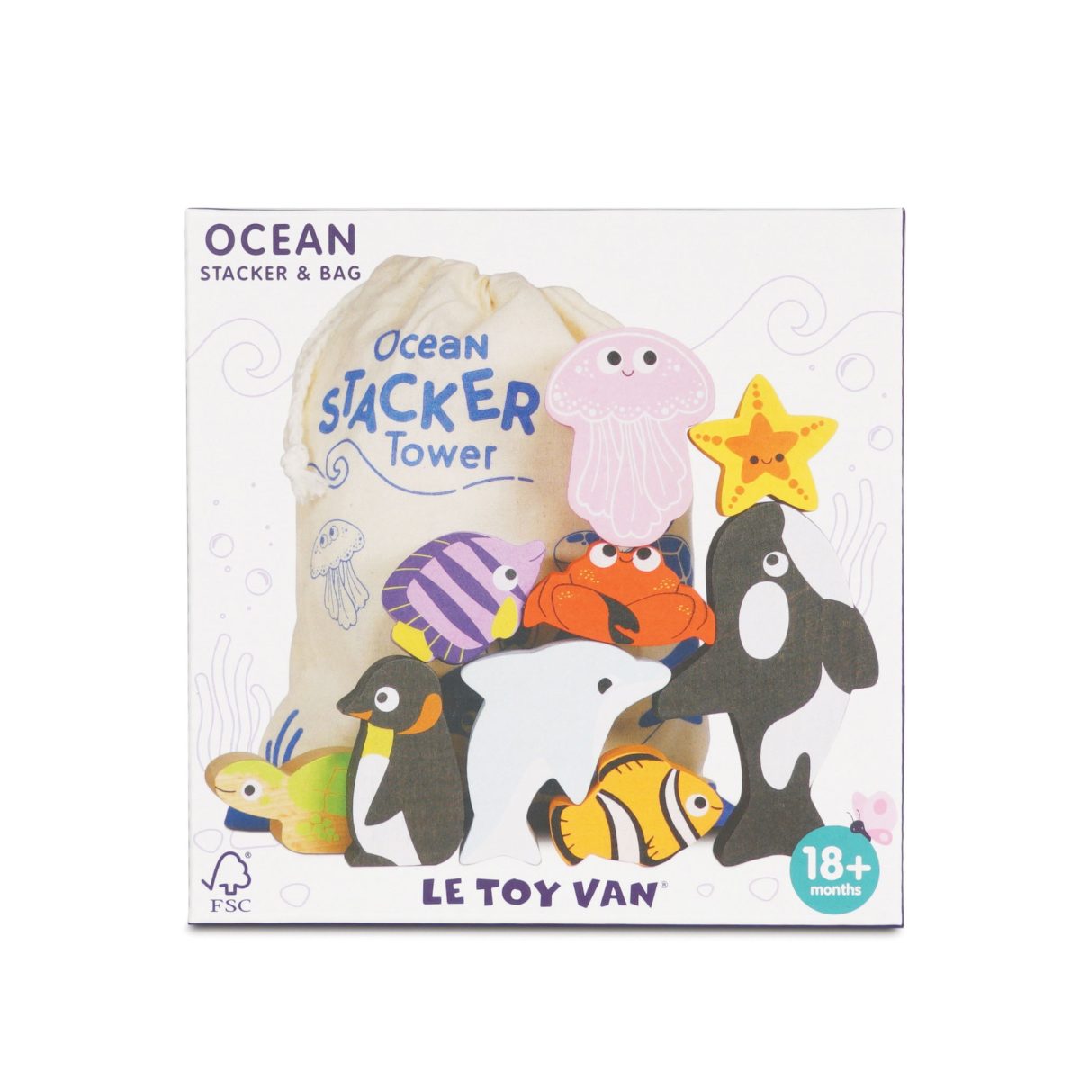 9 ξύλινα ζώα του ωκεανού, που μπορουν να τοποθετηθούν έτσι ώστε να ισορροπούν. Κατασκευασμένα από ξύλο FSC και βαμμένα με υψηλής ποιότητας υδατοχρώματα. Ηλικία 18+μηνών